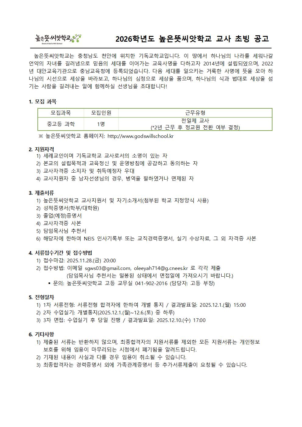 2026Çг⵵ ³ôÀº¶æ¾¾¾ÑÇб³ ±³»ç Ãʺù °ø°í-Áß°íµî °úÇб³»ç
